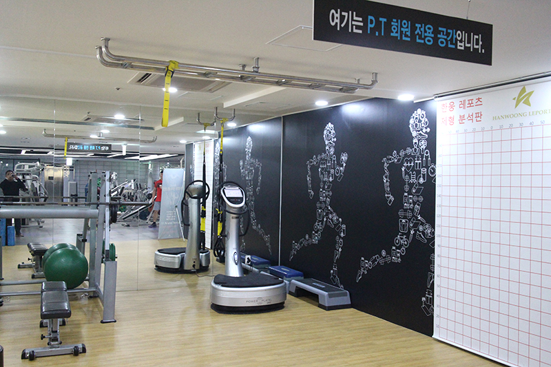 스미스 머신 2대, 케이블 머신 2대, 파워-랙 2대등다양한 프리 웨이트존